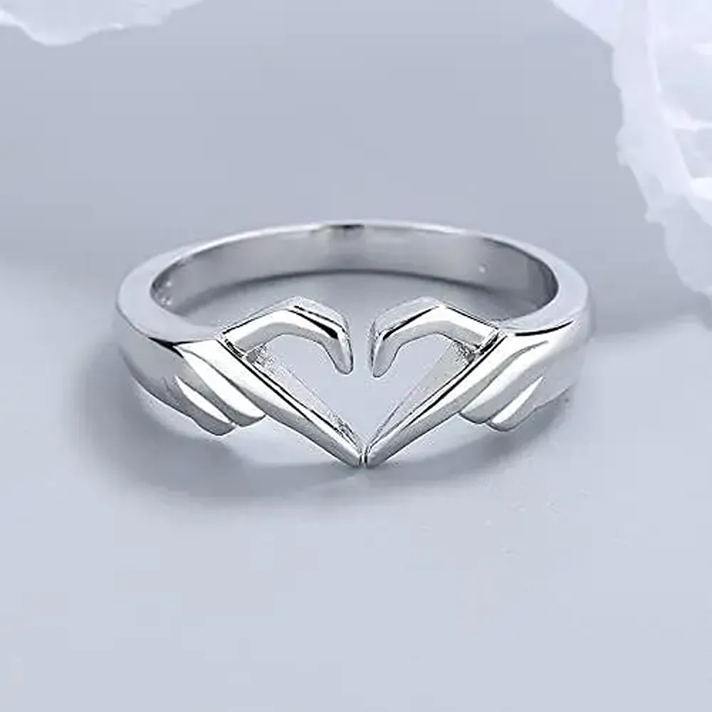 Pack of 2 Couple Hands Than Heart Thumb Finger Ring Metal Stainless Steel